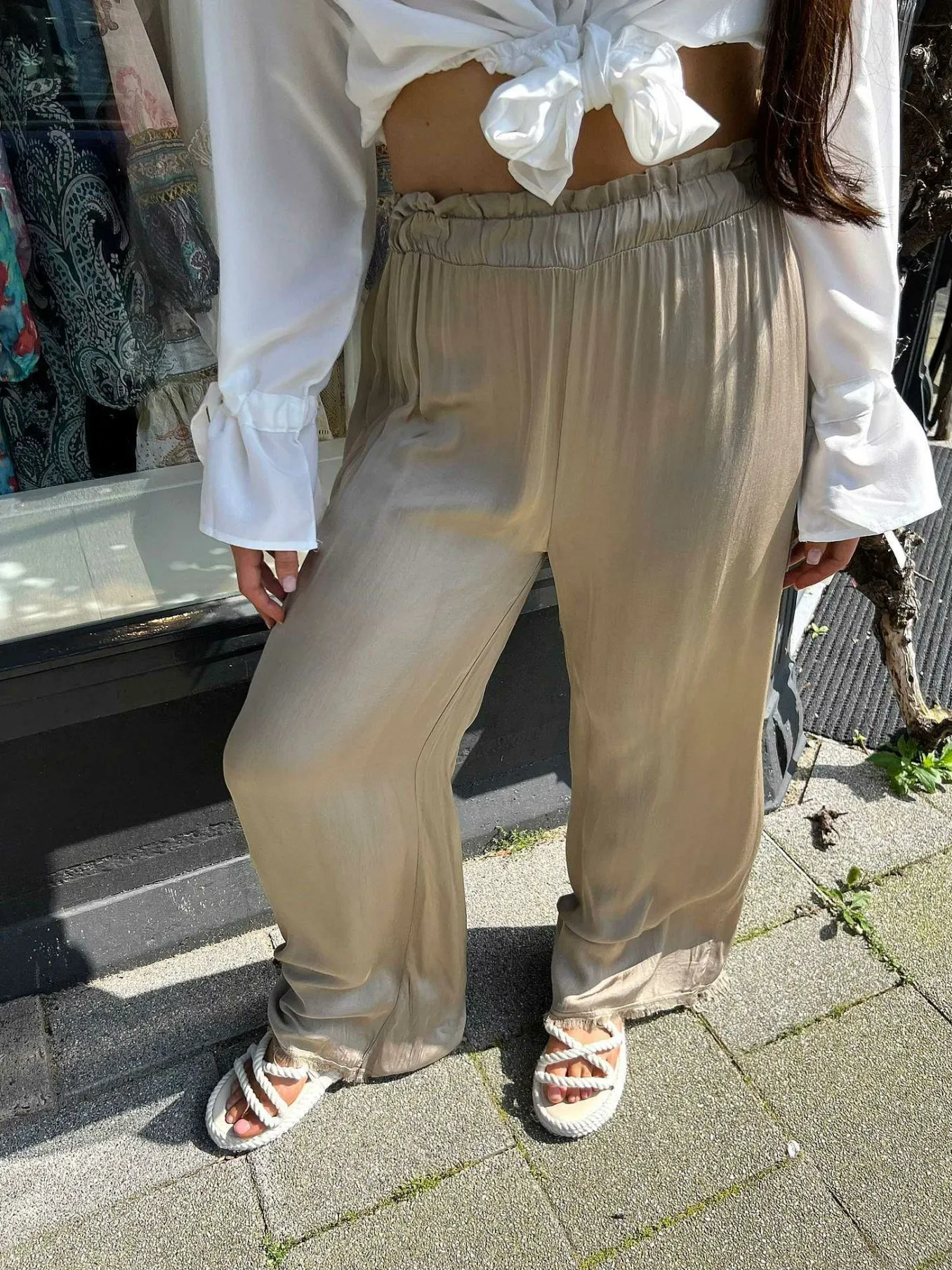 Deze Waanzinnige Silky Broek Heeft Een Elastieke Band Aan De Bovenkant En Leuke Ruffles Aan De Onderkant.