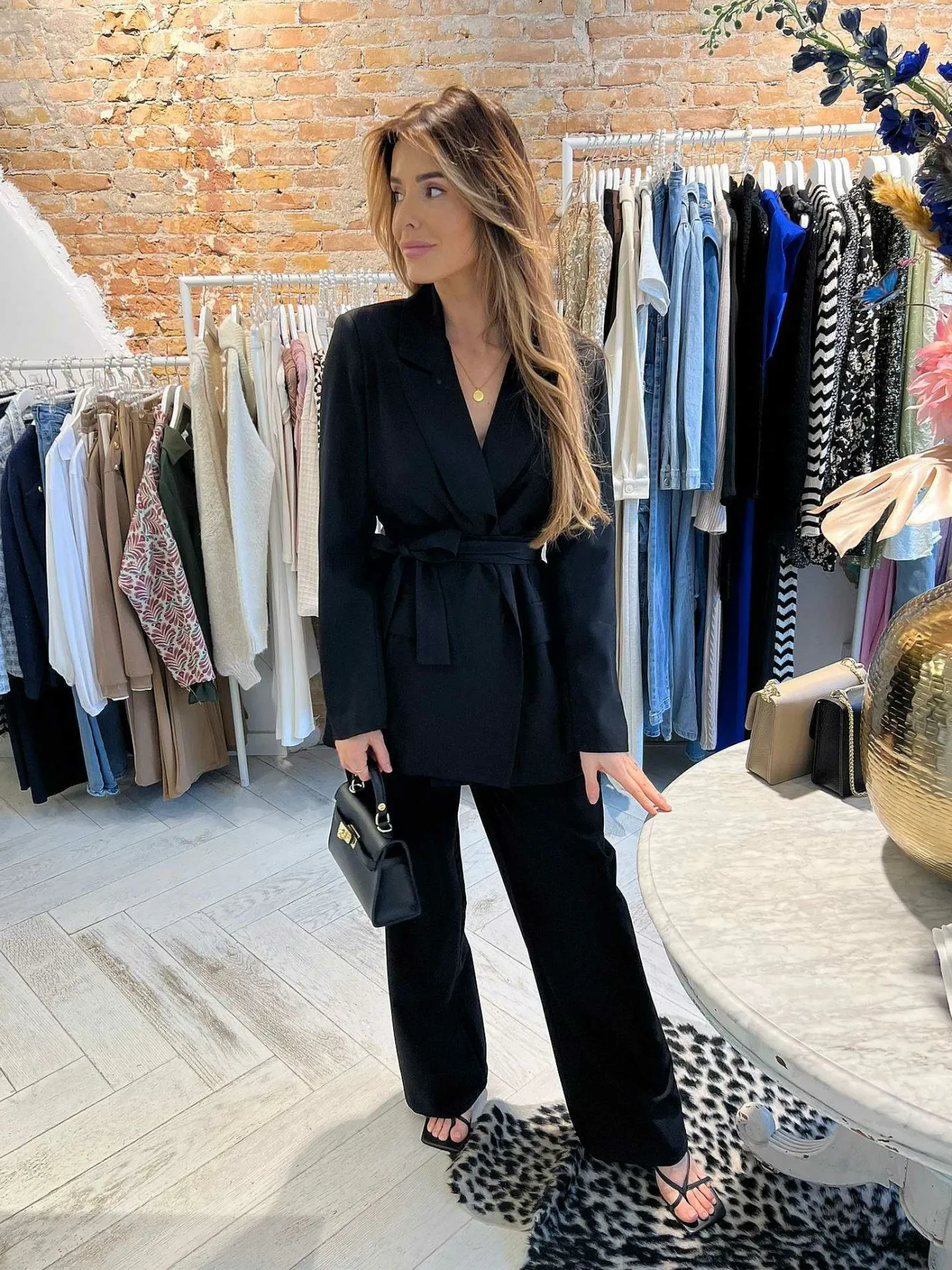 Dit Chique Pak Is Super Leuk Voor Kantoor Of Voor Een Leuke Gelegenheid! De Blazer Is Getailleerdmet Een Ceintuur En De Broek Loopt Wijd Uit. De Broek Heeft Op De Achterkant Een Elastieke Band, Waardoor Hij Heerlijk Zit In De Middel. Verkrijgbaar In Meerdere Kleuren.