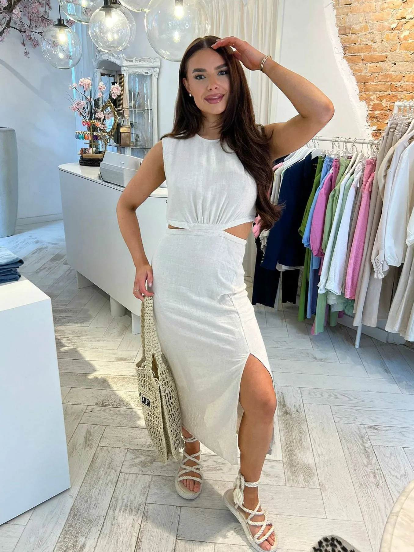 Hoe Leuk Is Deze Jurk? De Jurk Heeft Een Knoopje Op De Achterkant En Een Onzichtbare Rits. Het Heeft Een Leuk Cut Out Effect. Ook Heeft De Jurk Een Leuke Split. Verkrijgbaar In Meerdere Kleuren.