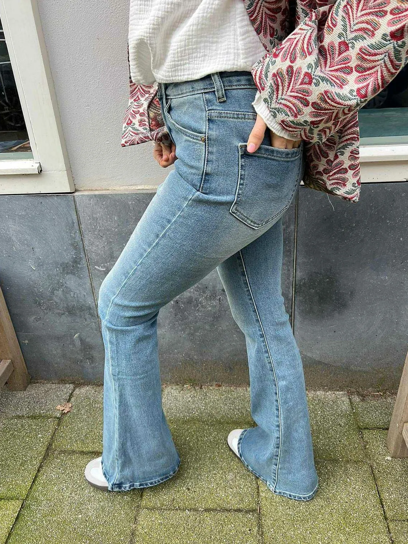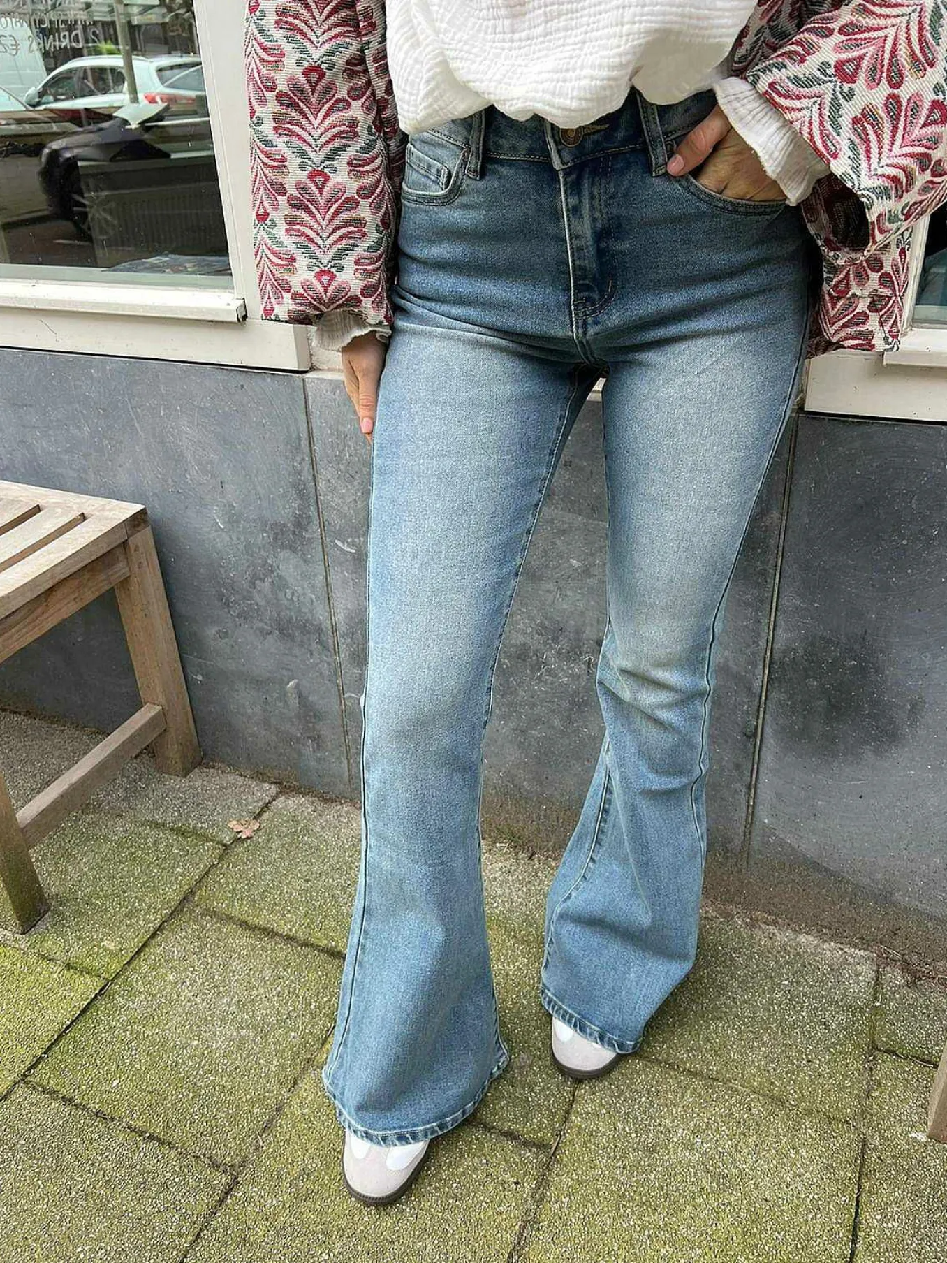 Deze Geweldige Flared Jeans Heeft Een Mooie Stoere Look Door De Medium Blauwe Kleur. We Love It!