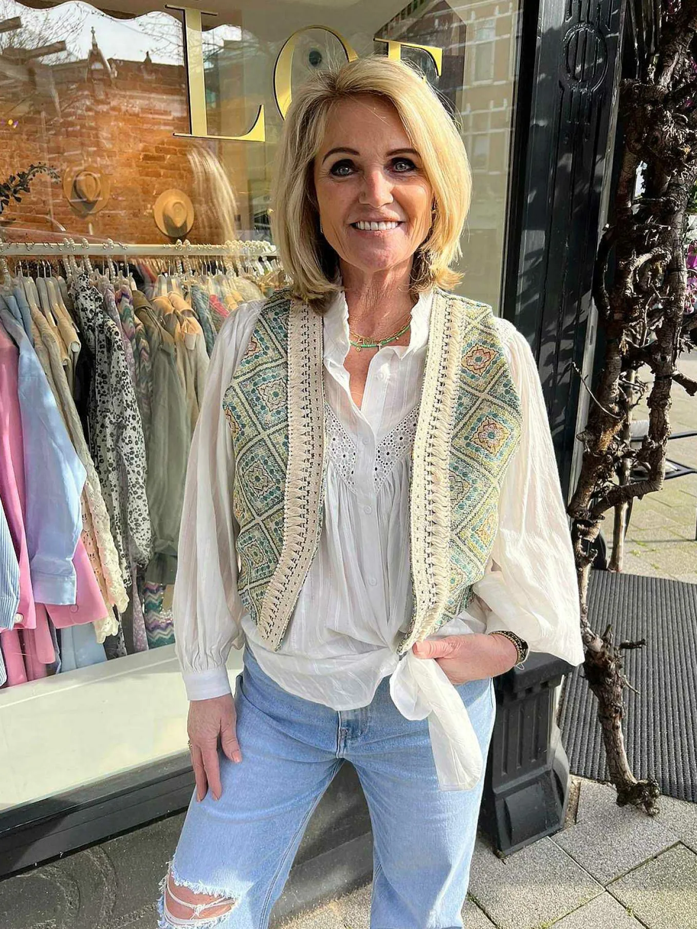 Mooie Blouse Met Kanten Details En Knopen.Materiaal: 100% KatoenWas Advies: Zie Label In Het Item.Model Info: Carla Is 1…