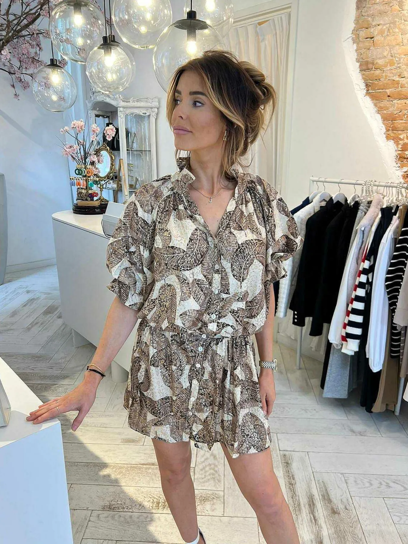 Hoe Leuk Is Dit Jurkje? Een Heel Mooi Silky Printje, En Met Een Mooi Golden Effect.Materiaal: 100% ViscoseModel Info: Ja…