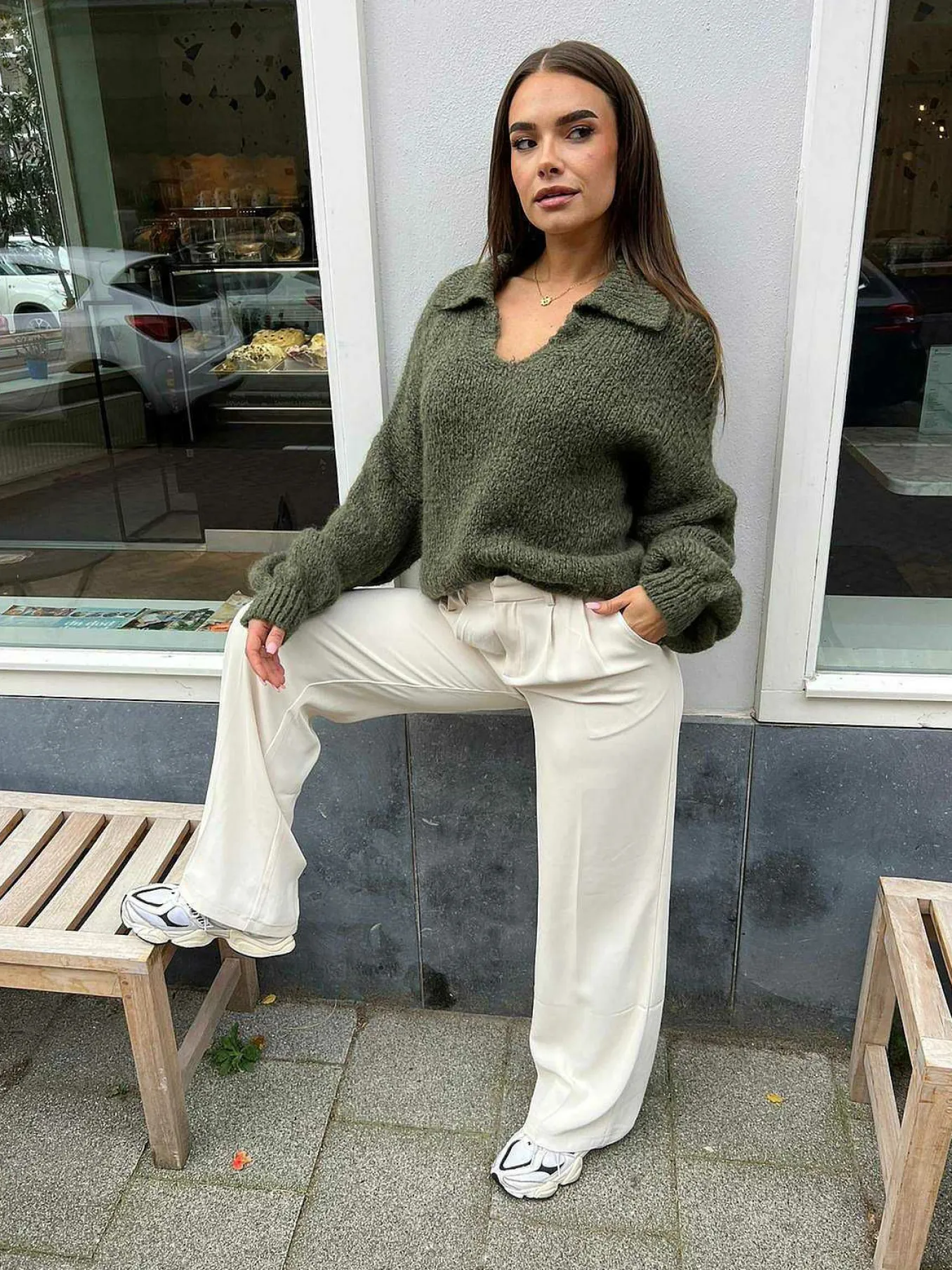 Mooie Sweater Met Een V-Hals En Ballonmouwen.