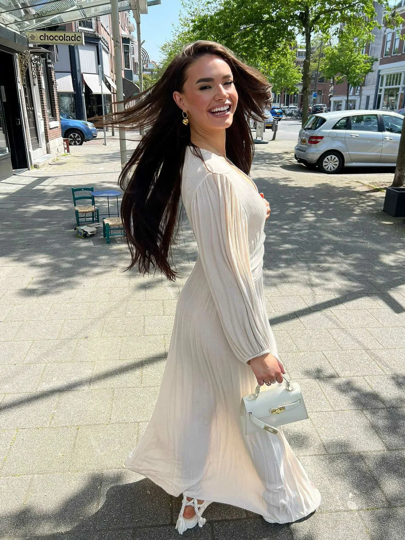 De Jurk Valt Mooi Lang, Het Heeft Een Elastieke Band Om De Middel Waardoor Die Je Taille Mooi Laat Vallen. De Jurk Heeft Een Mooie Split. Verkrijgbaar In Meerdere Kleuren.