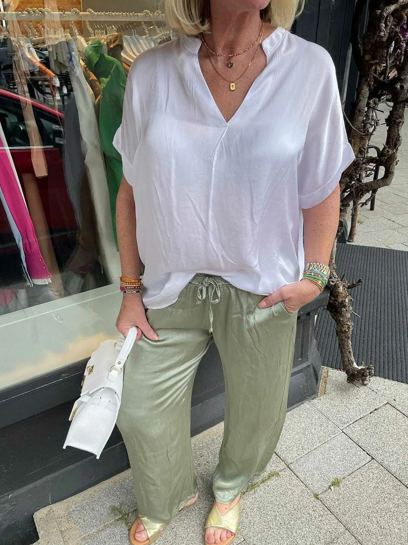Mooie Basic Top Met V-Hals. Verkrijgbaar In Meerdere Kleuren.