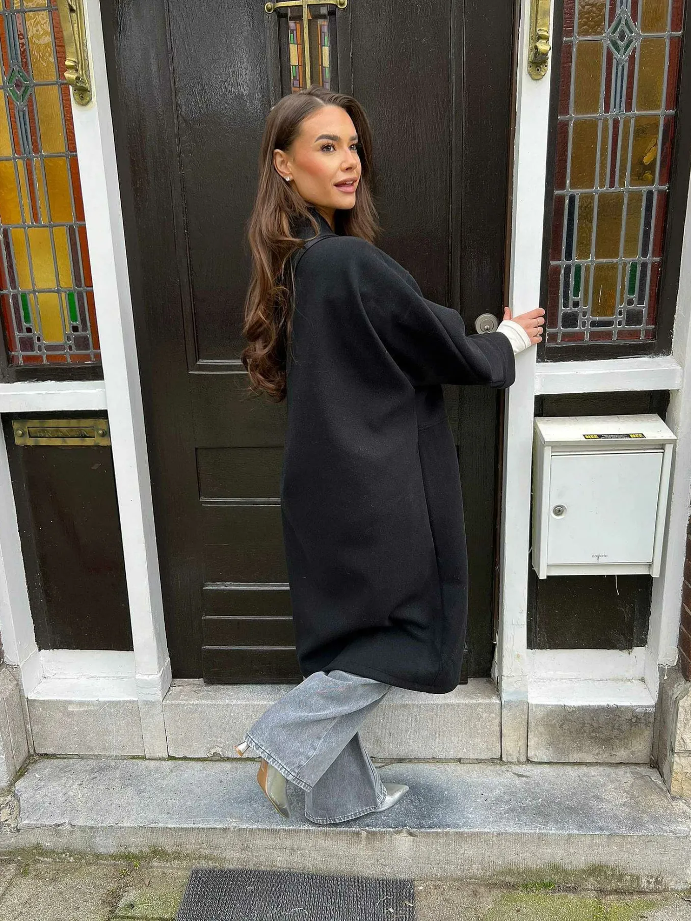 Deze Mooie Lange Coat Heeft 2 Steekzakken Aan De Voorkant En Valt Open (Geen Sluiting).