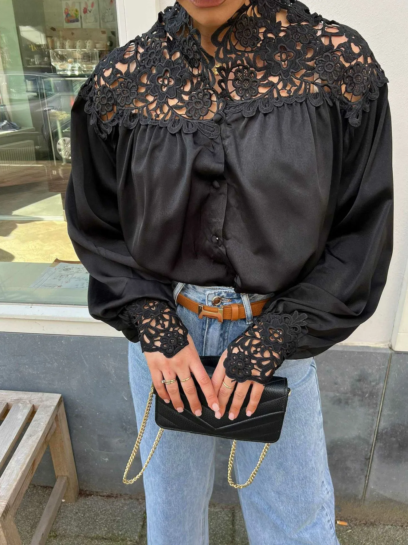 Deze Blouse Heeft Een Leuk Kanten Open Detail Aan De Bovenkant En Bij De Mouwen.