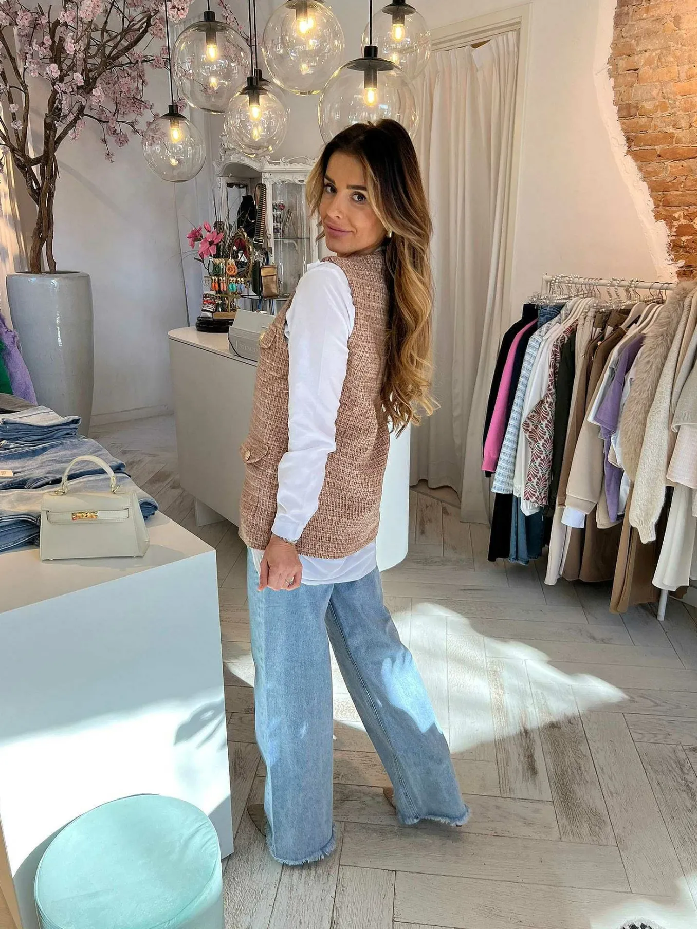 Dit Mooie Lange Gilet Heeft Een Klein Lurex Draadje En 3 Gouden Knopen Aan De Voorkant. Verkrijgbaar In Meerdere Kleuren…