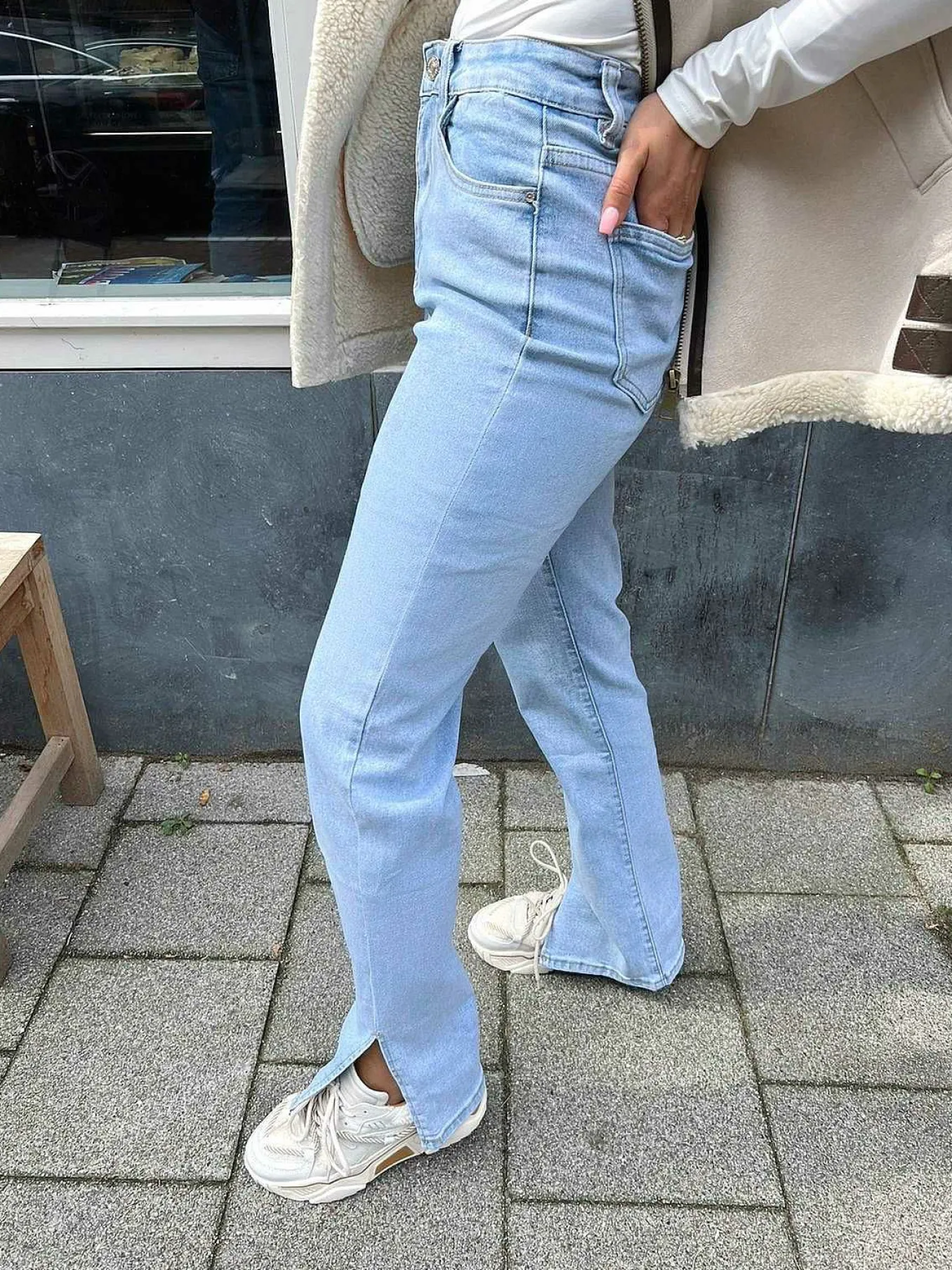 Deze Jeans Heeft Een Leuke Split Detail, Kleur Is Een Lichte Wassing En Gemaakt Van Een Fijne Stretch Stof.