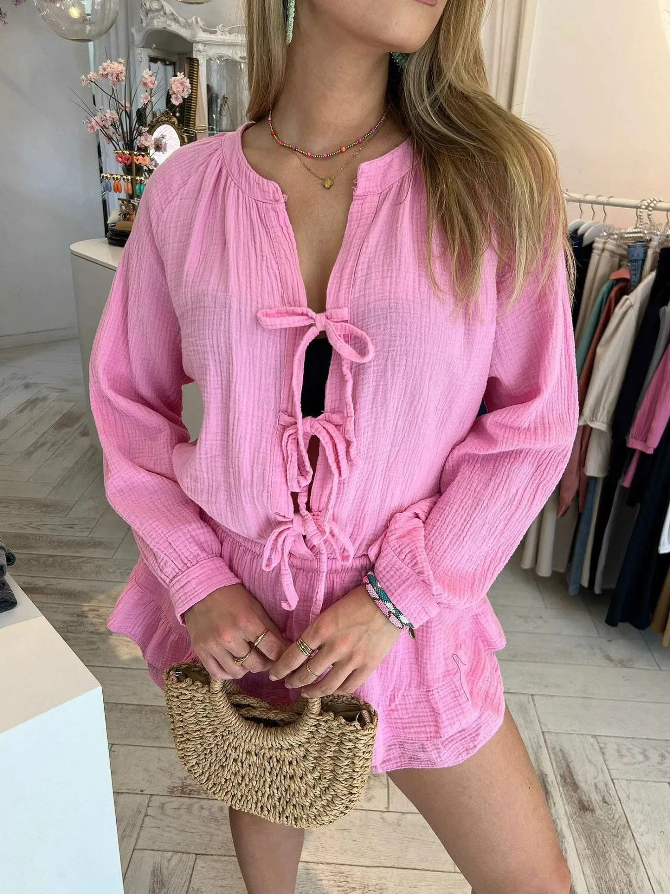 Het Trendje Van Nu, De Strikjes! We Hebben Ze Nu Ook In Een Jumpsuit Variant. Het Heeft Een Heerlijk Mousseline Stofje. De Jumpsuit Heeft Een Leuke Ruffle Aan De Onderkant En Er Zit Een Broekje Onder. Verkrijgbaar In Meerdere Kleuren.