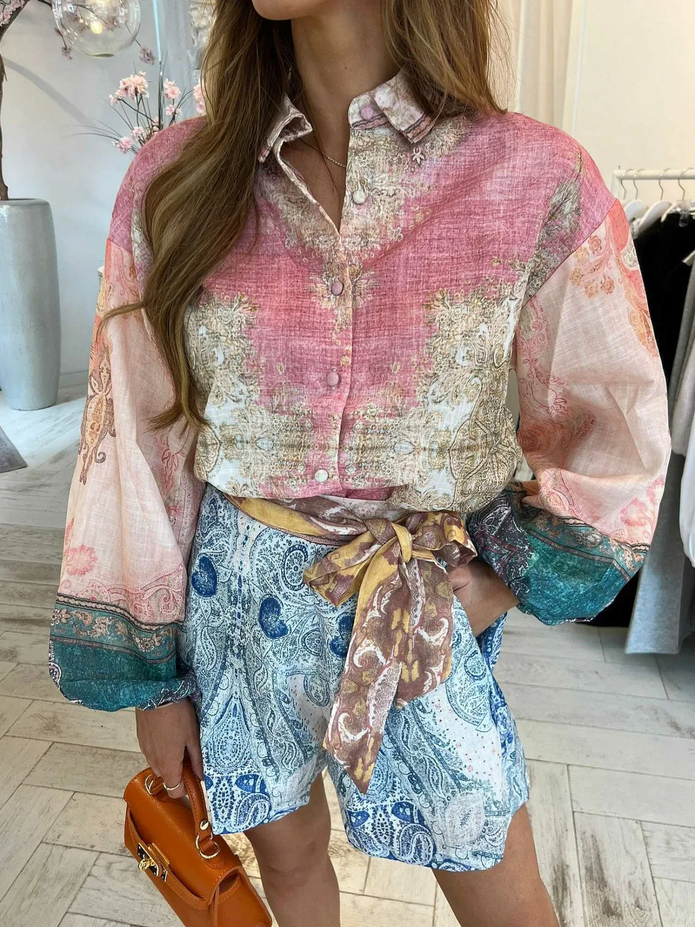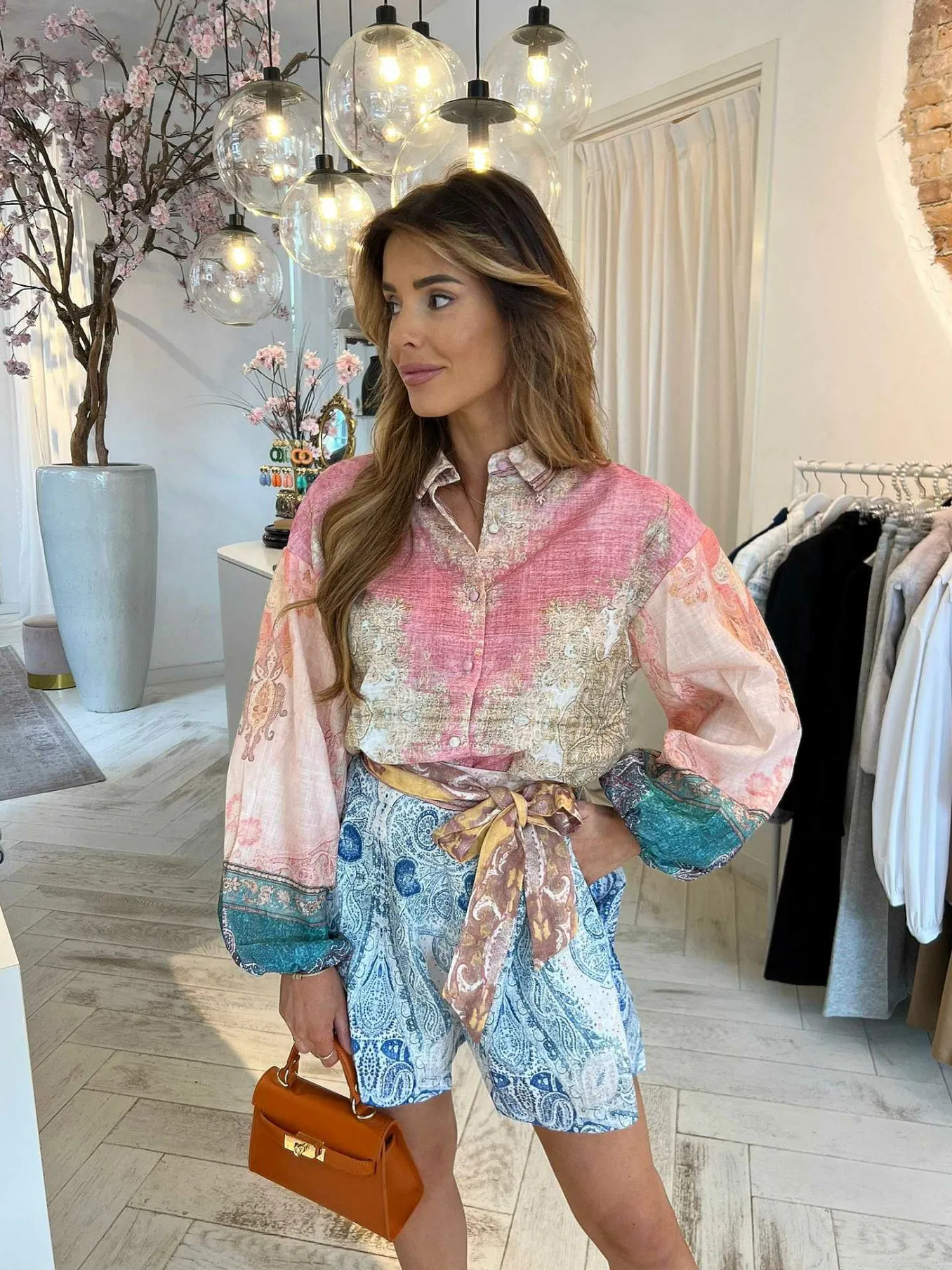 Hoe Mooi Is Deze Inspired 2-Delig Set. De Blouse Heeft Leuke Pofmouwen En De Short Heeft Een Bijpassende Riem.