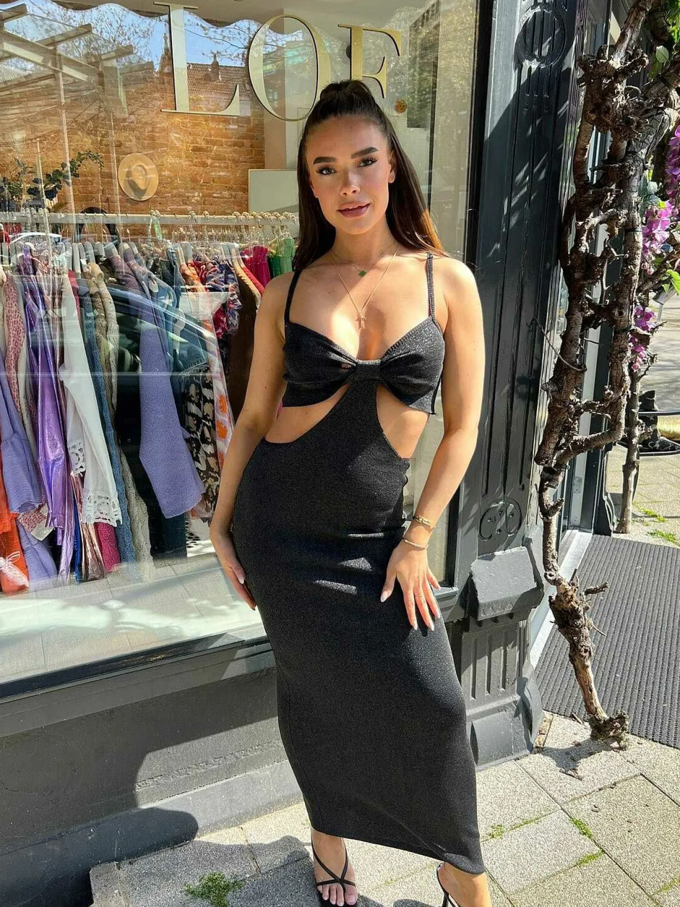Mooie Maxi Jurk Met Cut Out Details En Een Glitter Stof.