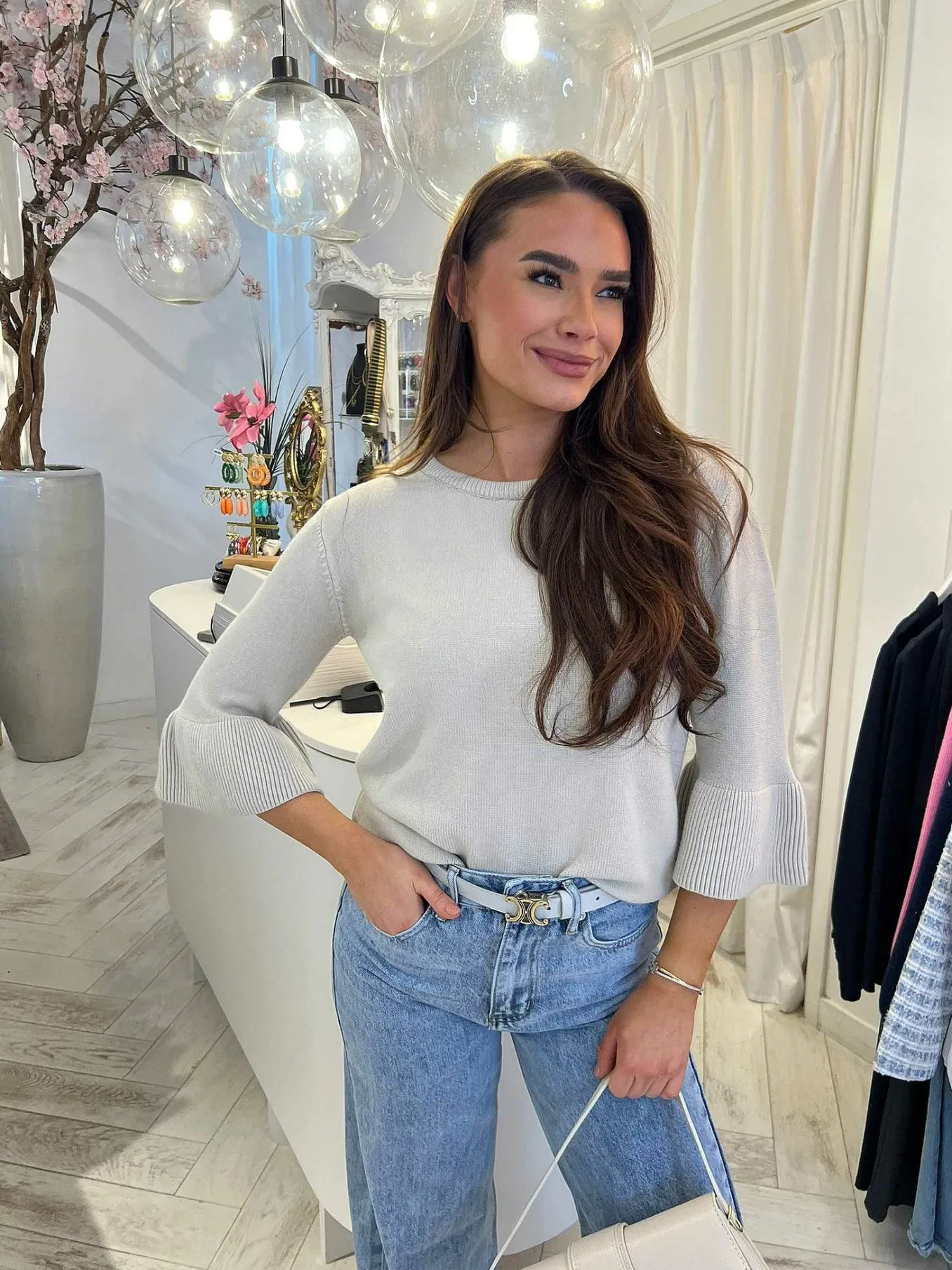 De Mouwen Van Dit Leuke Truitje Vallen In Een Kleine Flared. Het Truitje Heeft Een Ronde Hals En Is Verkrijgbaar In Meerdere Kleuren.