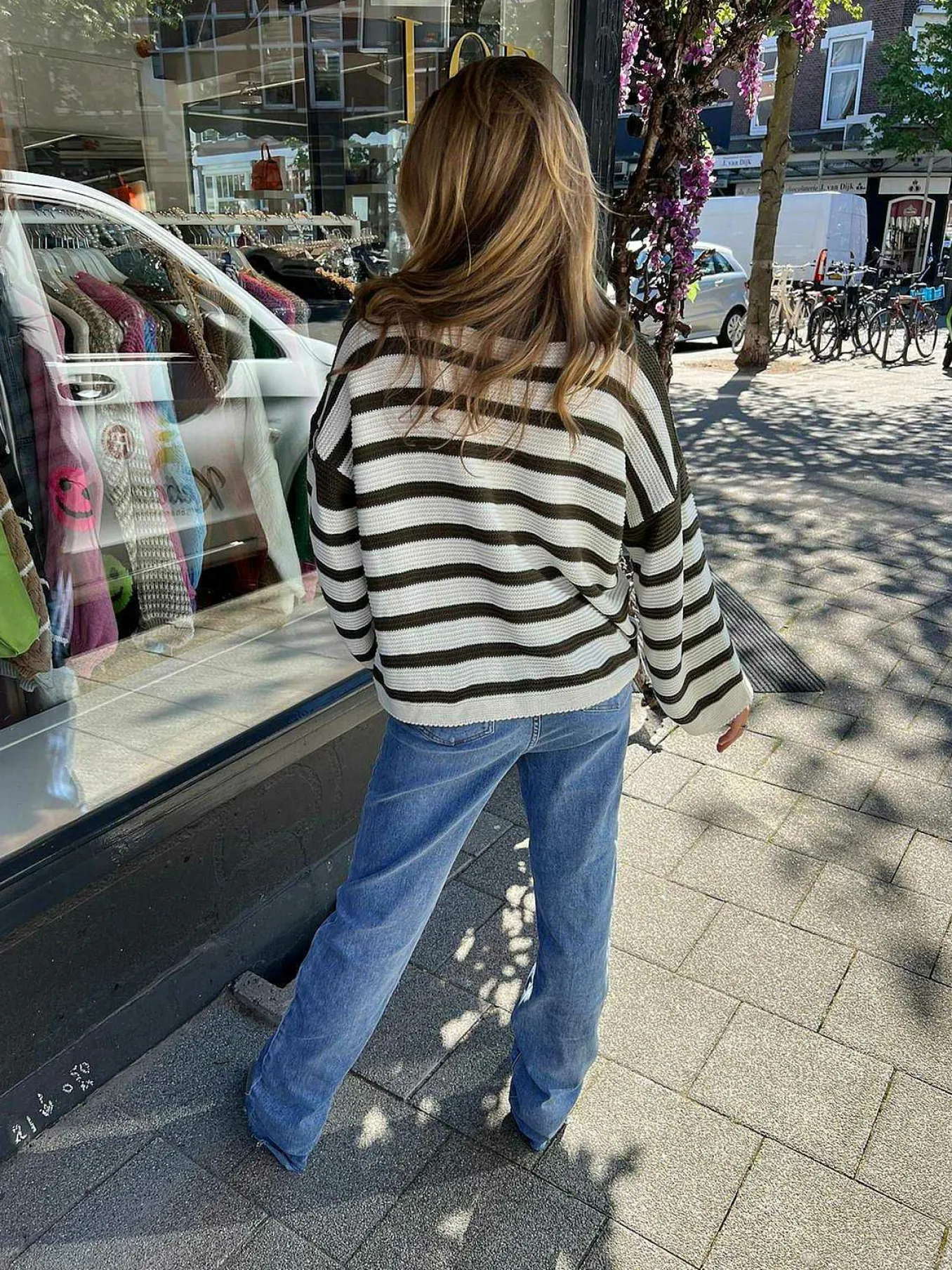 Leuke Sweater Met Een Gestreept Patroon En Een Oversized Fit.