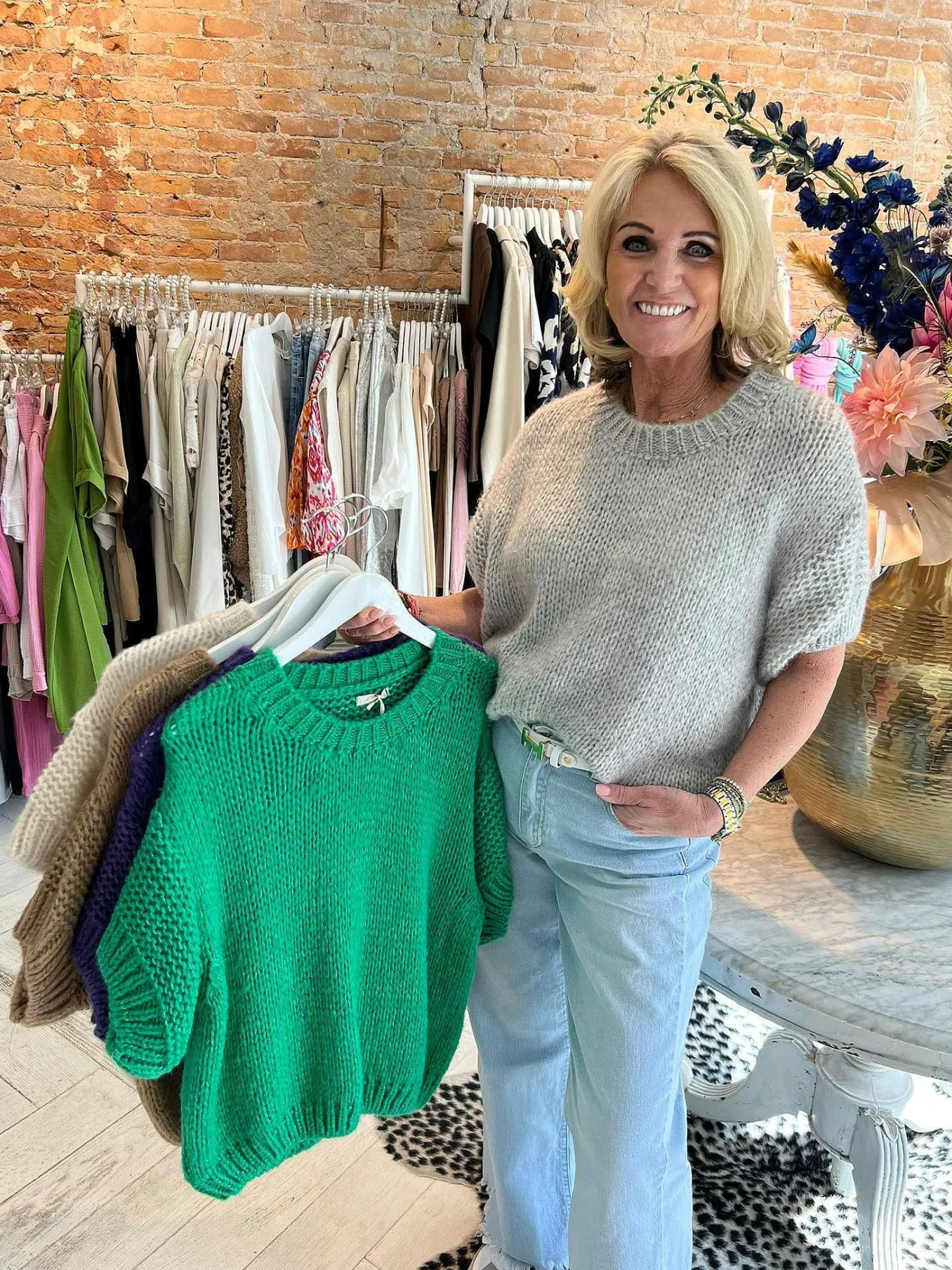 Heerlijke Knitted Top Met Korte Mouwen. Zachte Stof, Kriebelt Niet. Verkrijgbaar In Verschillende Kleuren.