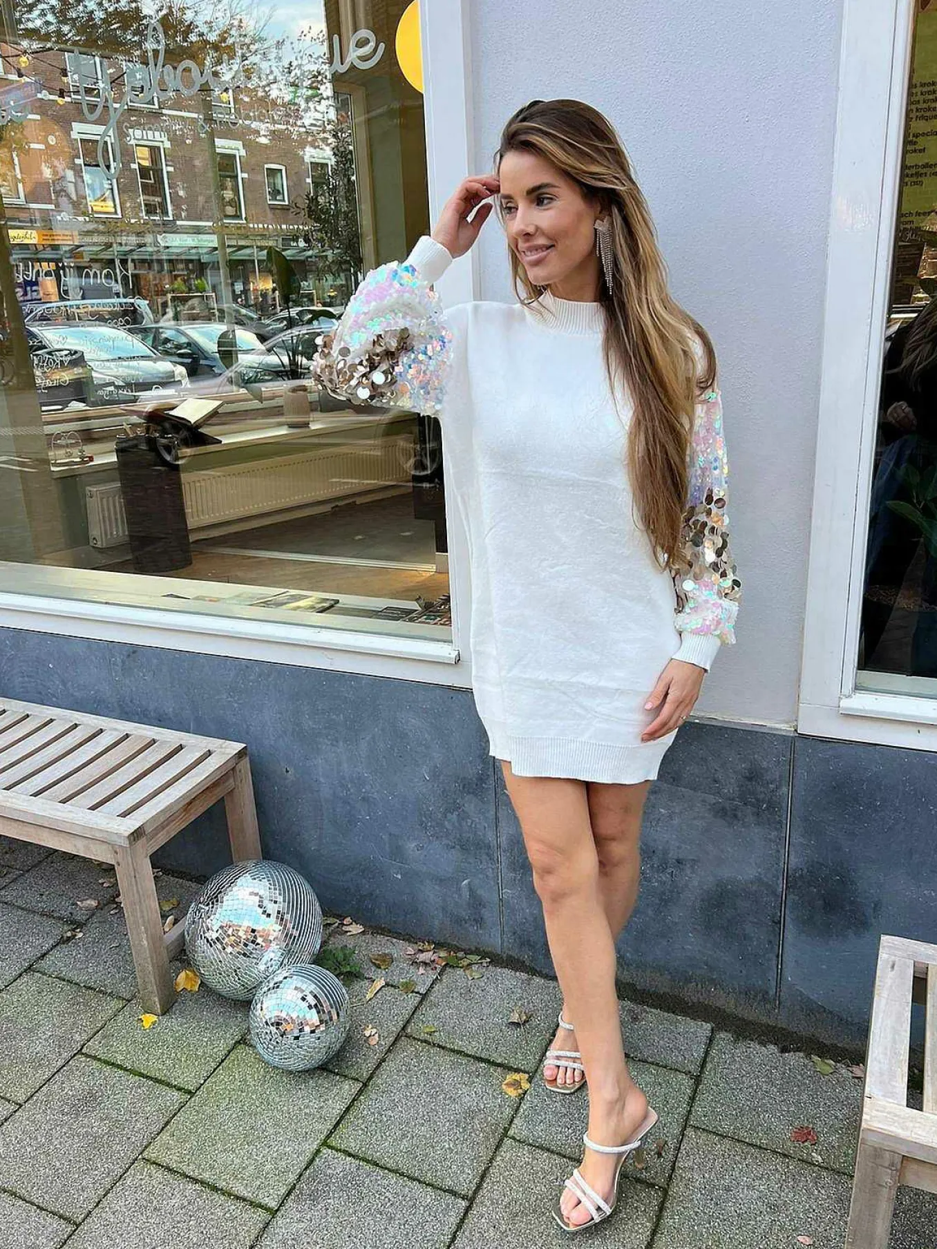 Deze Heerlijke Sweater Jurken Hebben Leuke Gekleurde Pailletten Op De Mouwen. Verkrijgbaar In Meerdere Kleuren.