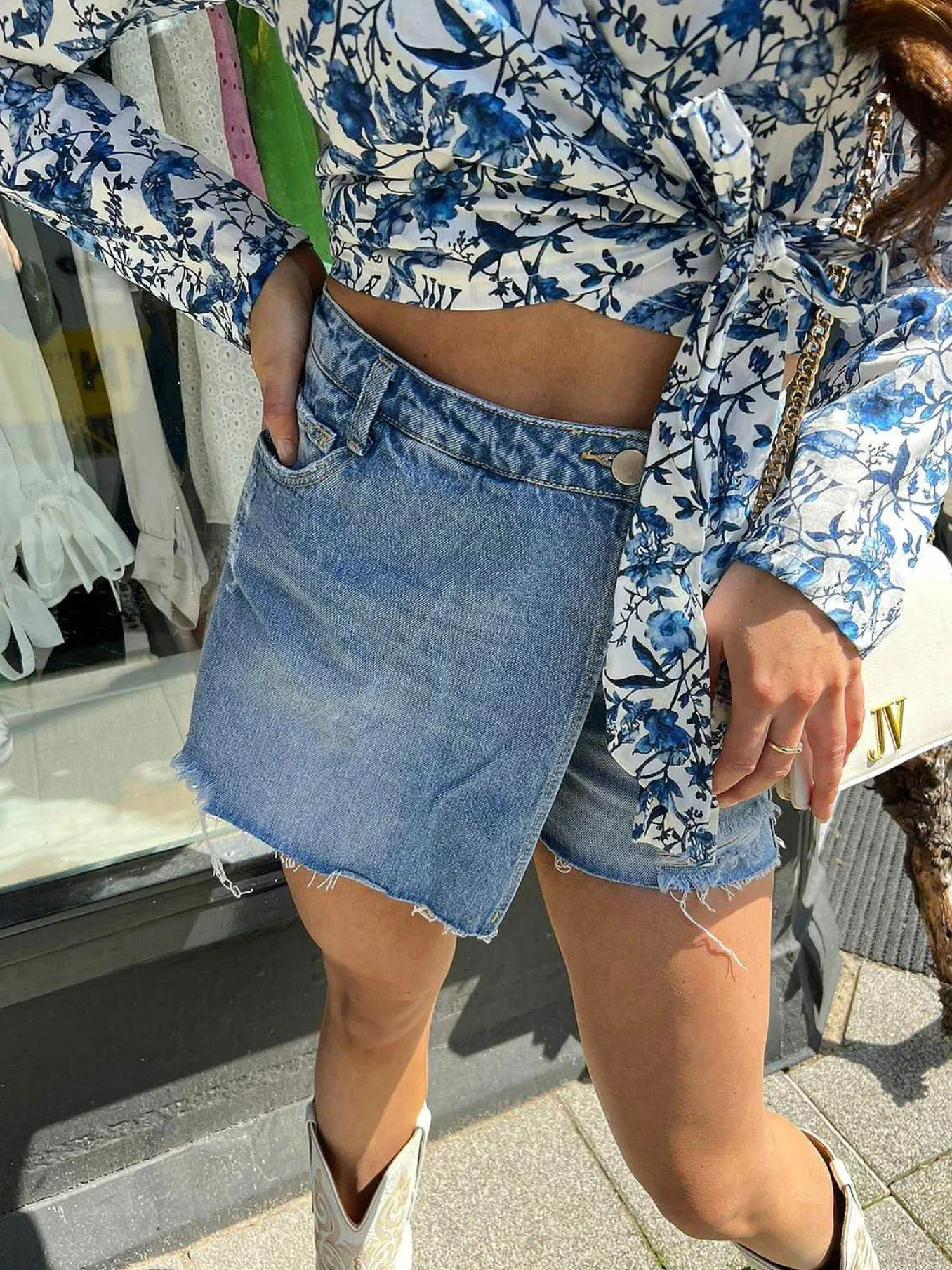 Leuk Denim Skort Met Een Overslag En Een Knoop.