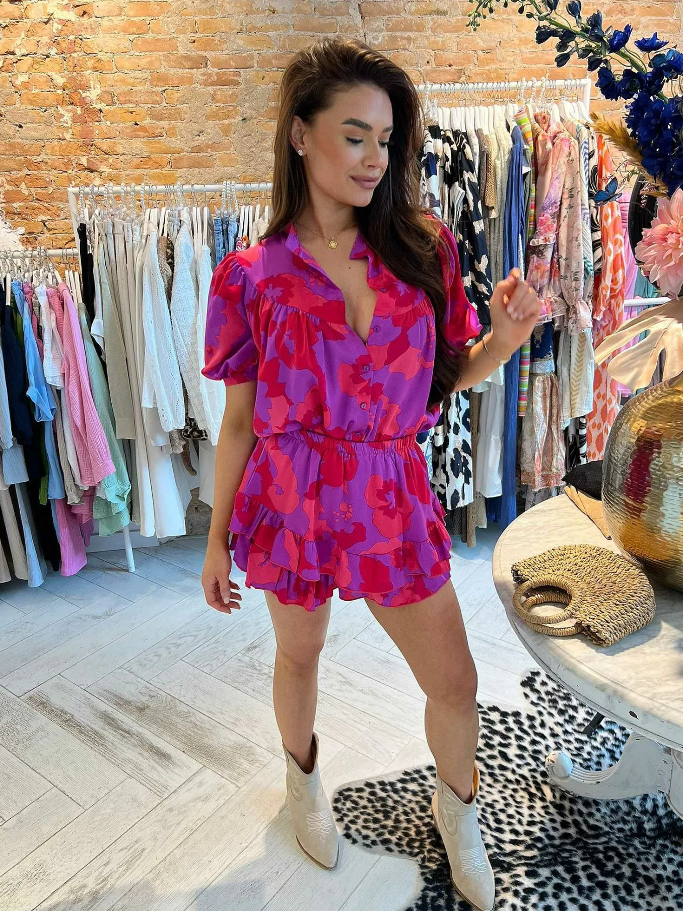 Dit 2 Delig Set Is Super Kleurrijk! Het Blousje Heeft Een Kleine Pofmouw En Knoopjes. Het Rokje Heeft Een Onderbroekje En Een Leuke Ruffle. Verkrijgbaar In Meerdere Kleuren.