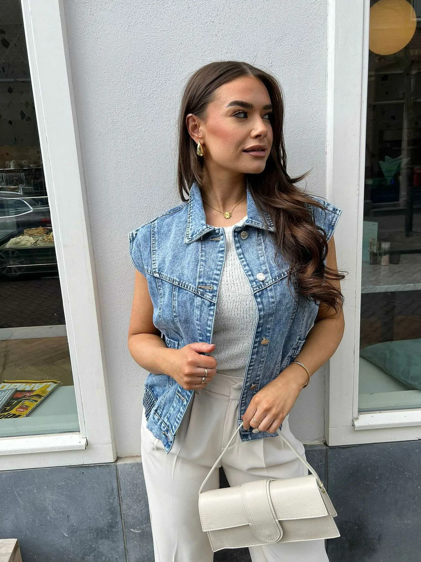 Stoer Denim Giletje Met Zakken. Leuk Te Combineren Met Onze Kiki Sweaters.