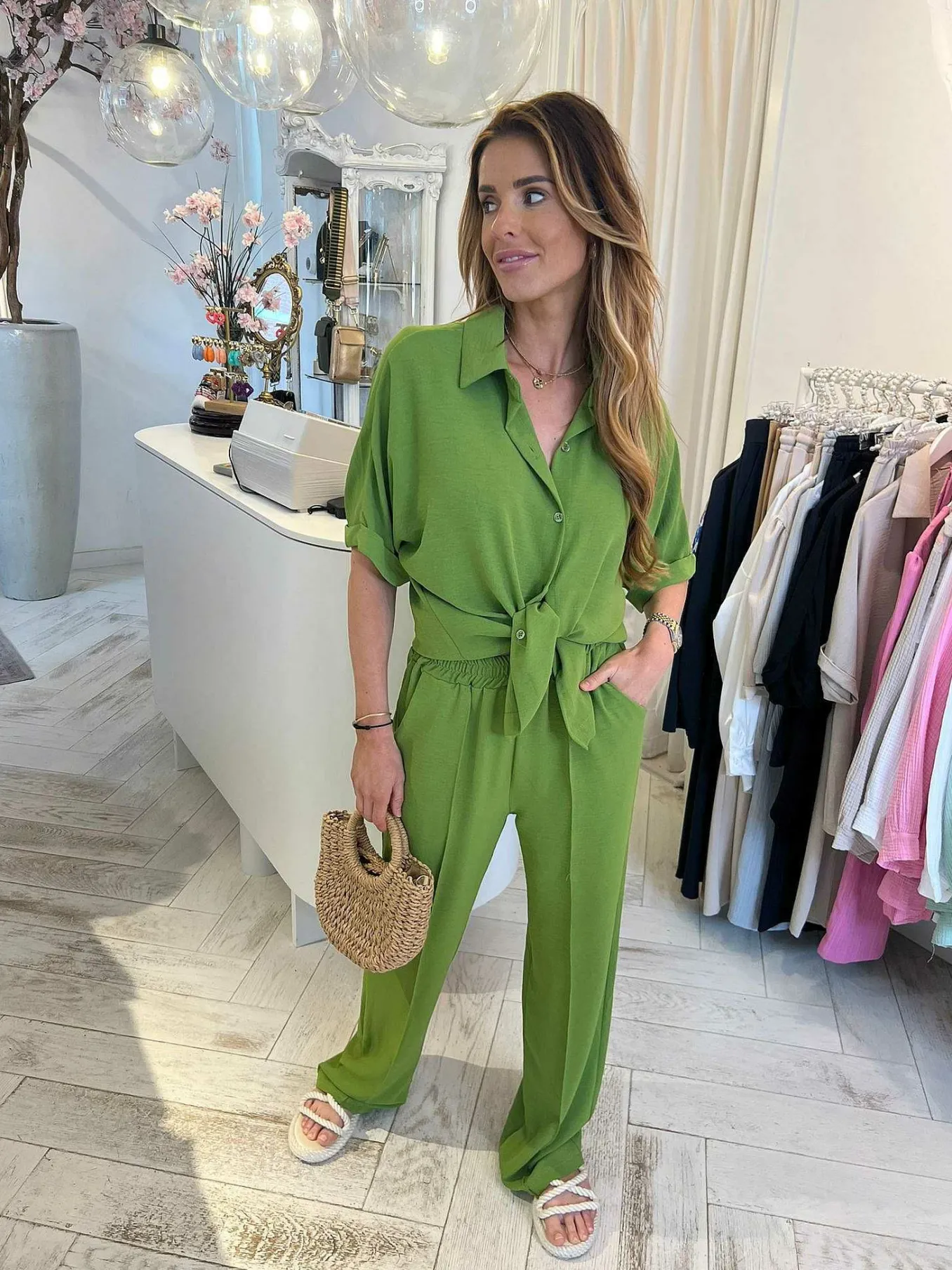 Dit Is Een Heerlijke 2 Delig Set Die Een Musthave Is Voor In Je Kast. Het Heeft Een Korte Mouw En Een Lose Fit Broek. Leuk Met Een Slipper Of Een Sneaker. Verkrijgbaar In Meerdere Kleuren.