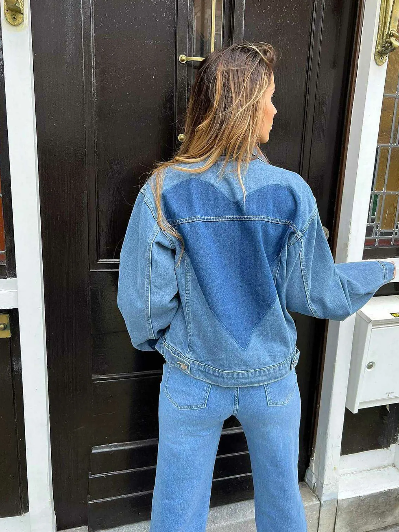 Deze Leuke Spijkerjas Heeft Een Open Detail Aan De Voorkant. De Achterkant Heeft Een Donker Hart.