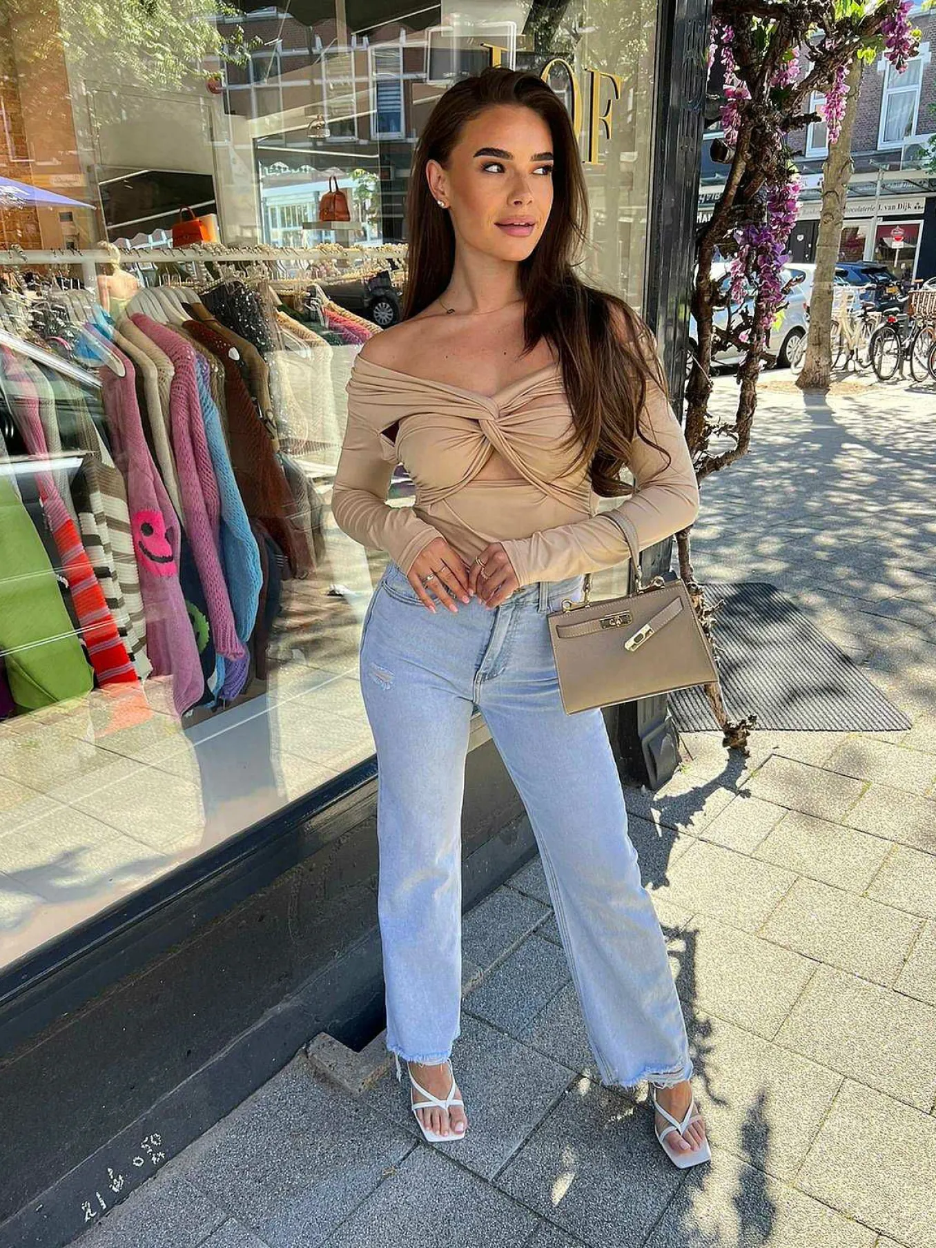Mooie Body Met Een Off Shoulder Model, Lange Mouwen En Een Stretch Stofje. Te Dragen Op Verschillende Manieren.