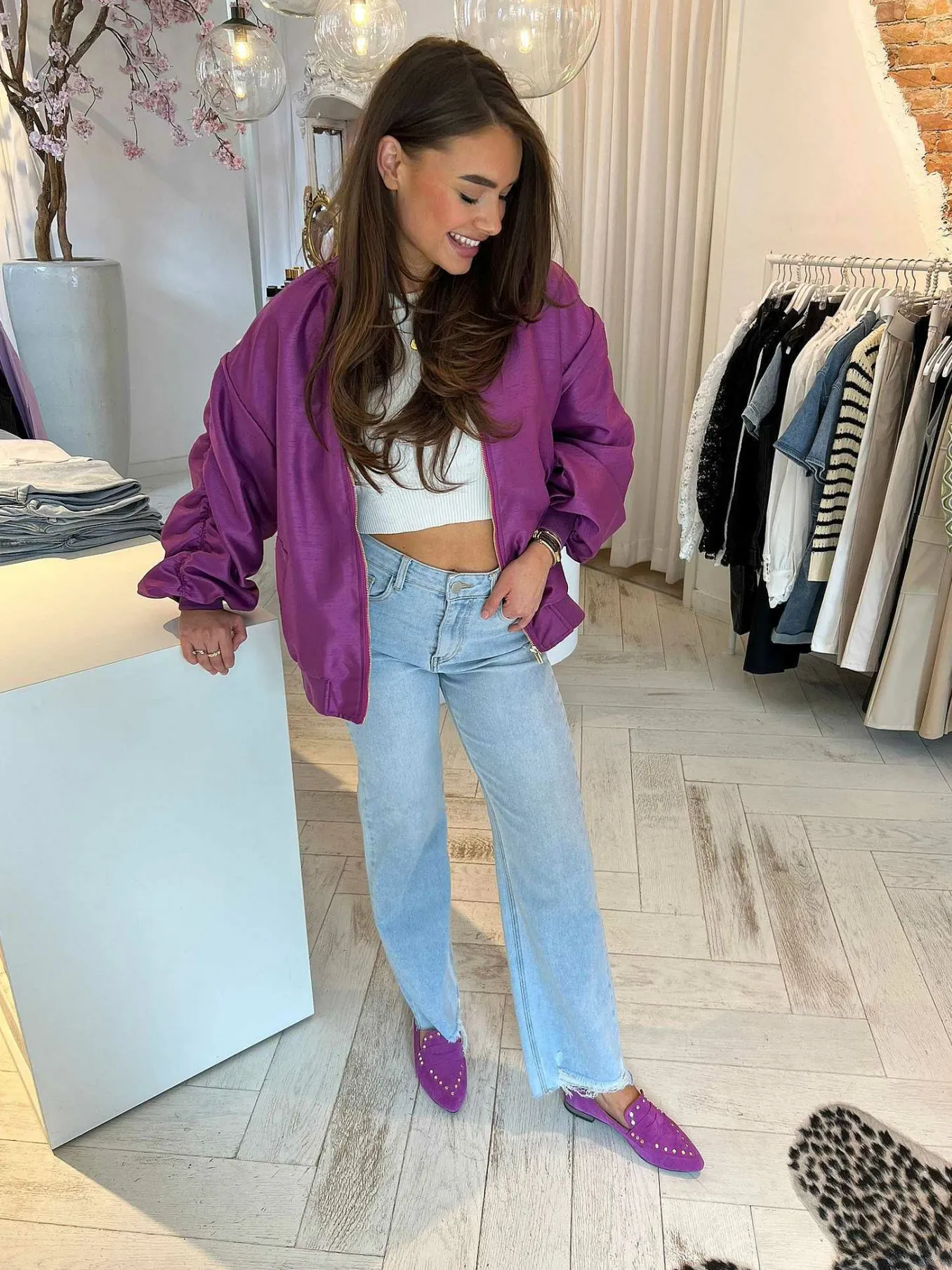 Deze Luxe Loafers Van Babouche Wissel Je Gemakkelijk Tussen Zakelijk En Casual. Je Combineert De Populaire Schoenen Bijvoorbeeld Met Een Jeans En Een Biker Jack Voor Een Edgy Look Of Je Draagt De Schoenen In Combinatie Met Een Pantalon En Een Blouse Voor Een Zakelijke Look. Het Model Is Voorzien Van Mat Goudkleurige, En Zijn Gemaakt Van Luxe Purple Suede. De Binnen Voering Is Helemaal Van Leer, En Heeft Een Comfortabele Hak (1,5 Cm).