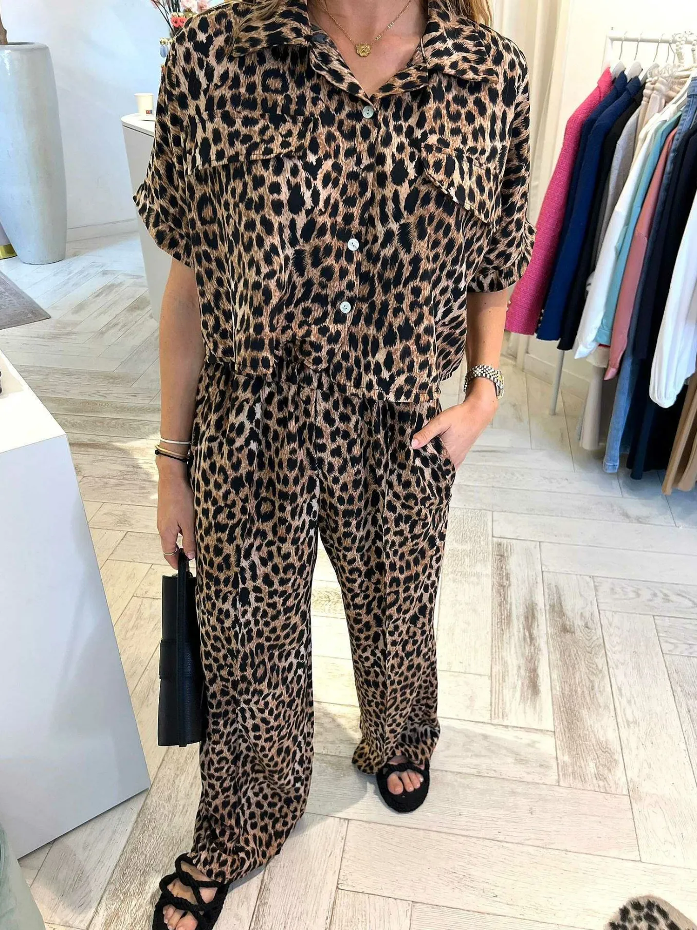 We Lof Leo Print! Hoe Leuk Is Dit Leo Setje? Het Blouseje Is Een Cropped Model Met Mooie Knoopjes. De Broek Is Een Wide Fit.